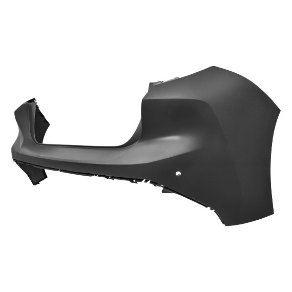 A pintar na cor do veículo. Com orifícios para sensores de estacionamento.