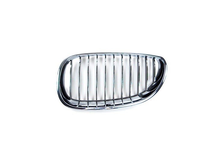 Borda cromada, ripas cromadas e pretas.