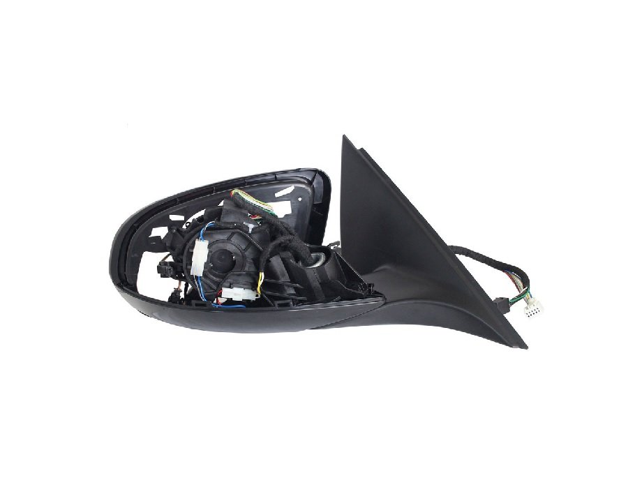 Corpo do espelho retrovisor sem capa, com vidro asférico (ângulo morto), com memória, luz de cortesia e com opção (side assist) aviso de ultrapassagem. Ajuste elétrico e térmico interno, conector de 16 pinos, dobrável eletricamente.