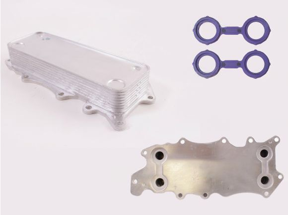 Arrefecedor de óleo com juntas. Dimensões 110x265x40mm. Dimensões da colmeia: 75x220x35 mm.