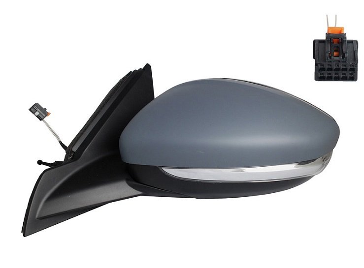 Completo, capa a ser pintada na cor do veículo com pisca (lâmpada WY5W) e vidro convexo. Ajuste interno manual, dobrável manualmente com conector de 2 pinos.