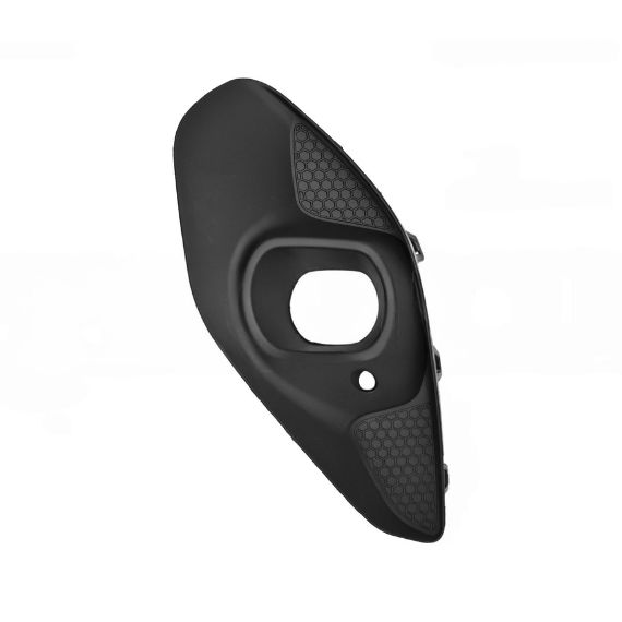 Cor preta. Com orifícios para os faróis de nevoeiro.