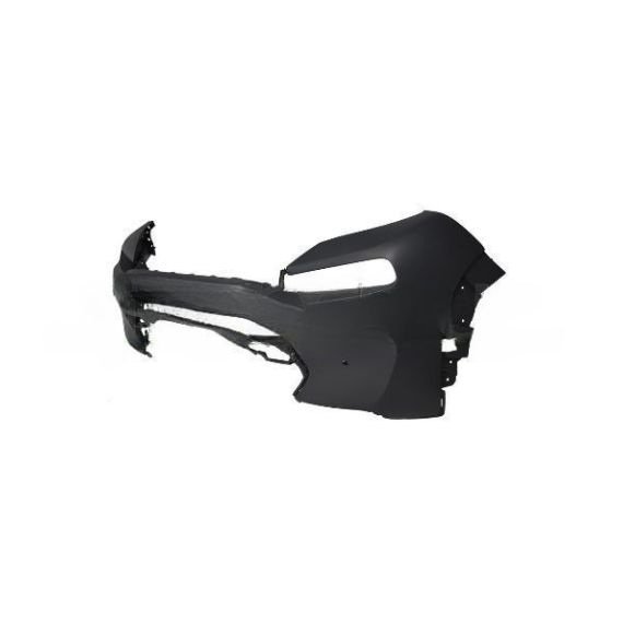 A pintar na cor do veículo. Com orifícios para os sensores de estacionamento.
