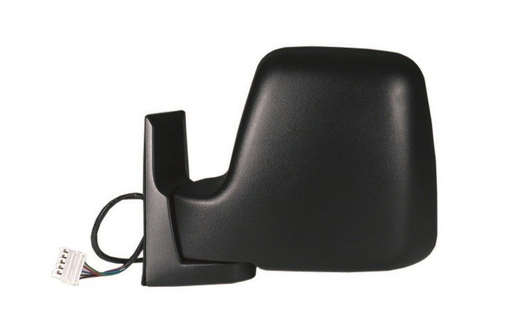 Completo, com capa preta. Vidro convexo. Interior regulável eletricamente, aquecido e rebatível manualmente.