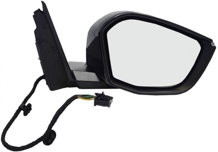 Completo com capa preta, vidro convexo, luz de cortesia e luz intermitente. Regulação interior eléctrica. Térmico e com sensor de temperatura. Inclinável eletricamente com conetor de 11 pinos.