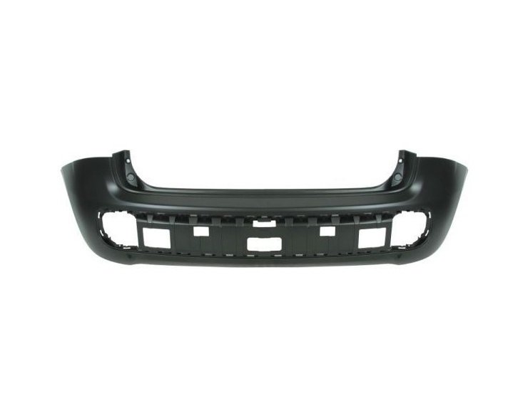A pintar na cor do veículo. Com orifícios para sensores de estacionamento.