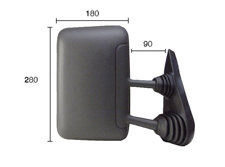 Completo com capa preta e vidro convexo. Regulação externa manual. Braço curto, dimensões: 90mmx280mmx180mm. Adequado para modelos a partir de 01/1996.