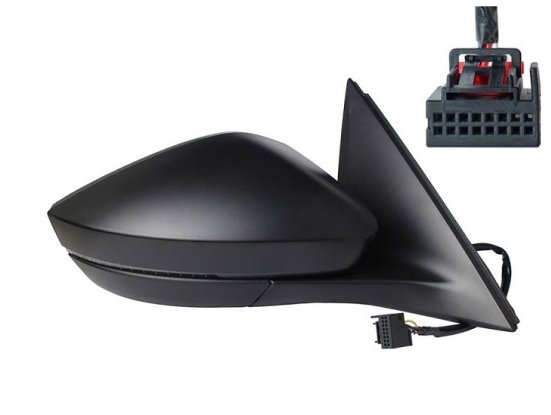 Completo com capa preta, vidro convexo e luz indicadora LED. Elétrico, ajuste interno térmico, dobrável manualmente com conector de 6 pinos.