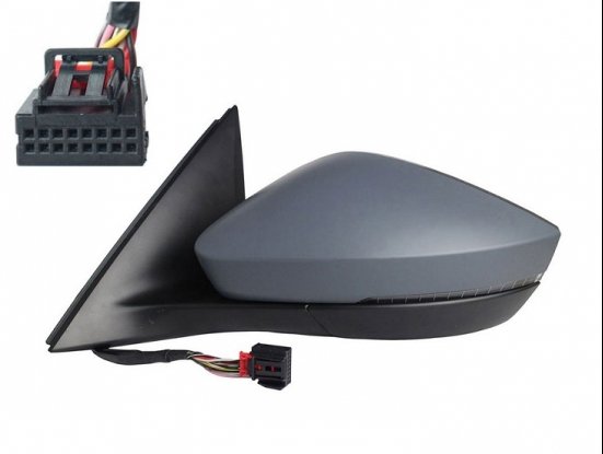 Com capa a pintar à cor da viatura, luz indicadora LED e vidro convexo. Elétrico, ajuste térmico interno, dobrável eletricamente com conector de 10 pinos e cabo para a função eletrocrômica.
