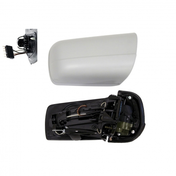 Completo com capa a ser pintada na cor do veículo e vidro asférico (ponto cego), azul. Ajuste interno elétrico, térmico, conector macho de 7 pinos eletricamente dobrável.