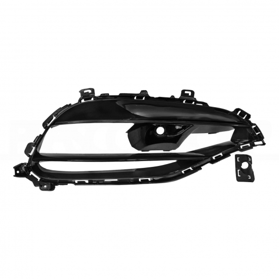 Preto brilhante. Com orifícios para sensores de estacionamento.