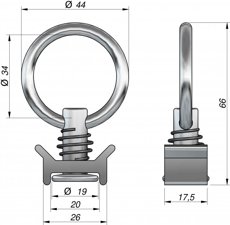 Terminal fecho p/perfil aeronáutico simples c/anel ACCESSOIRES CAMION SISTEMA DE FIXAÇÃO DE CARGA